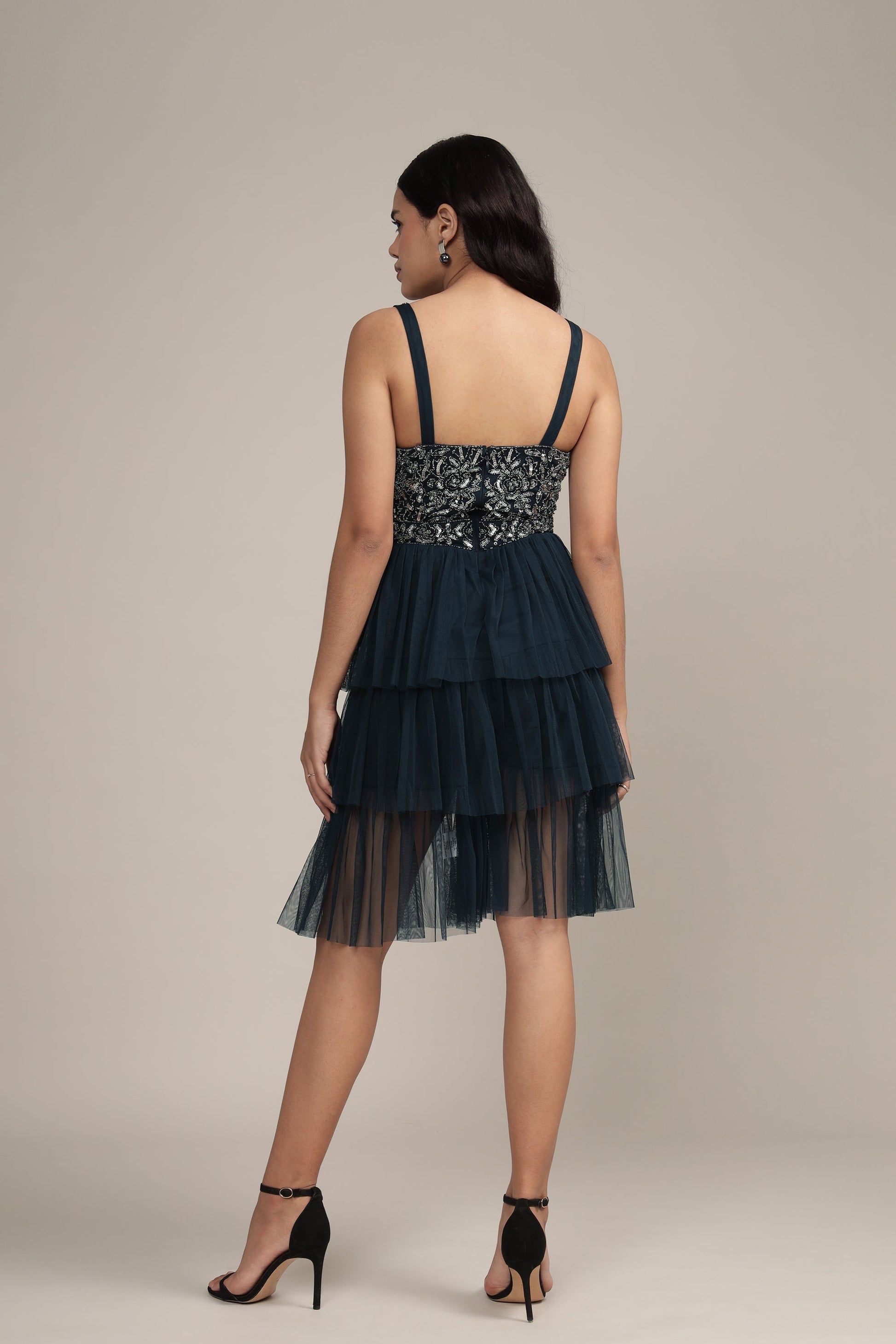 Builda Embellished Mini Dress in Navy