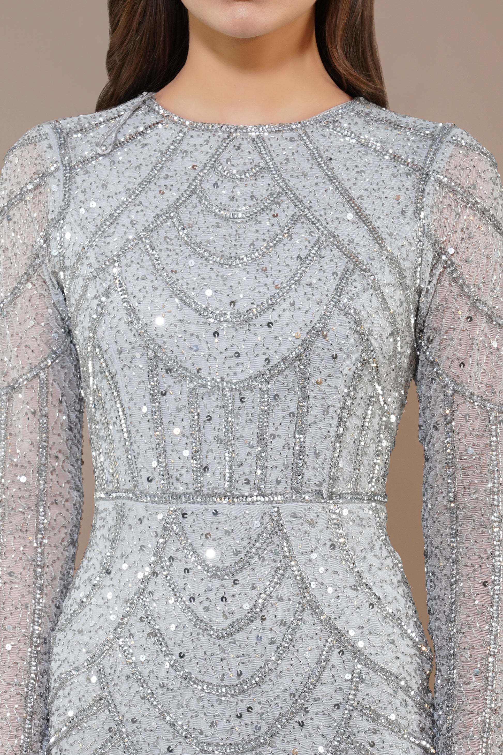 The Lace & Beads Ellis Maxi Dress in Ice Blue is a captivating choice for formal occasions, blending timeless elegance with modern sophistication. The intricately hand-embellished overlay top, adorned with delicate sequins, adds a touch of glamour. Featuring a high round neckline and long sleeves, this dress offers both a refined and modest style. The flowing A-line skirt falls gracefully to the floor, creating a flattering and effortless silhouette. Whether for weddings, galas, or special events, this meticulously designed dress ensures you’ll make a memorable entrance.