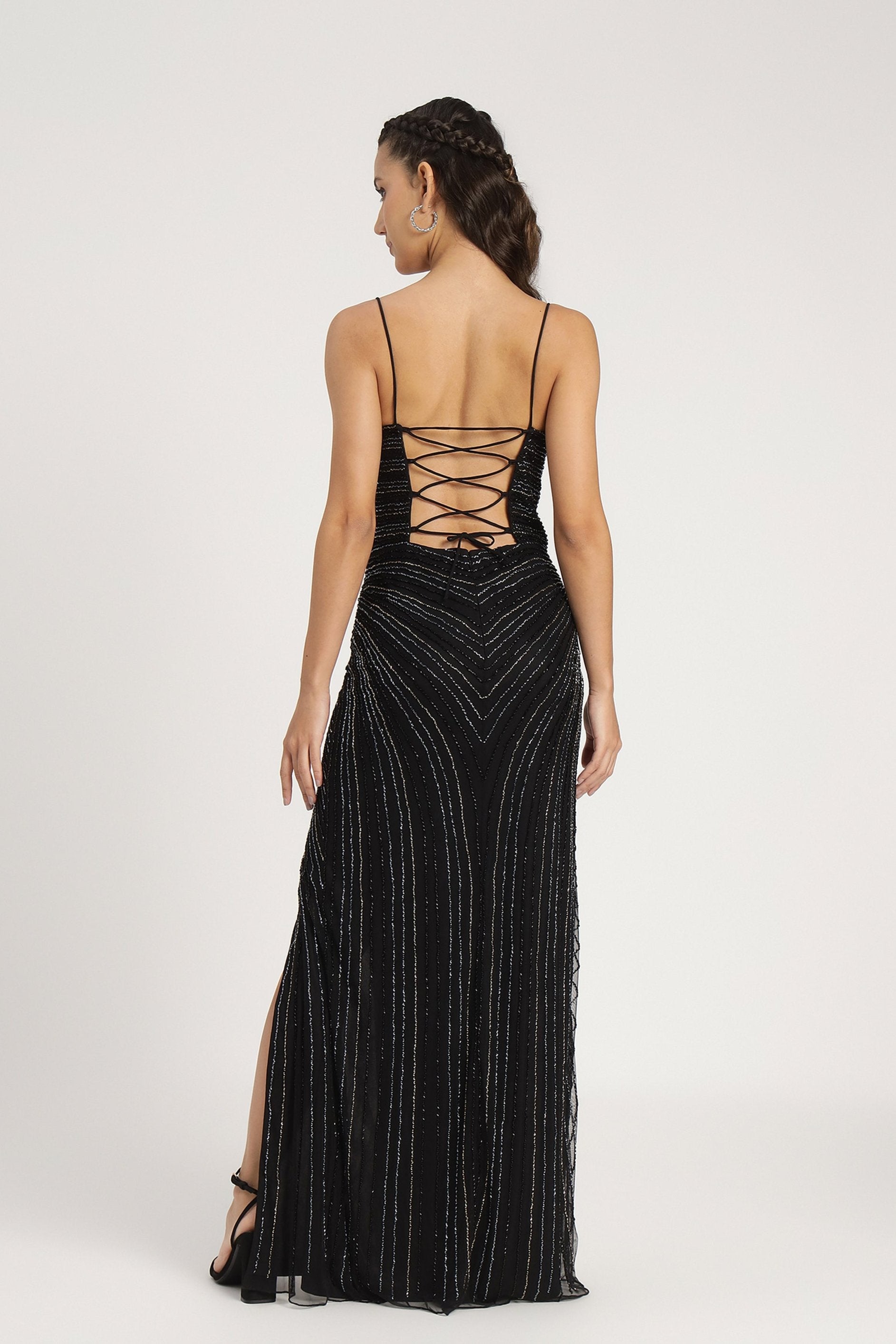 Lace & Beads Kimberly Embellished Maxi Dress in Black.
