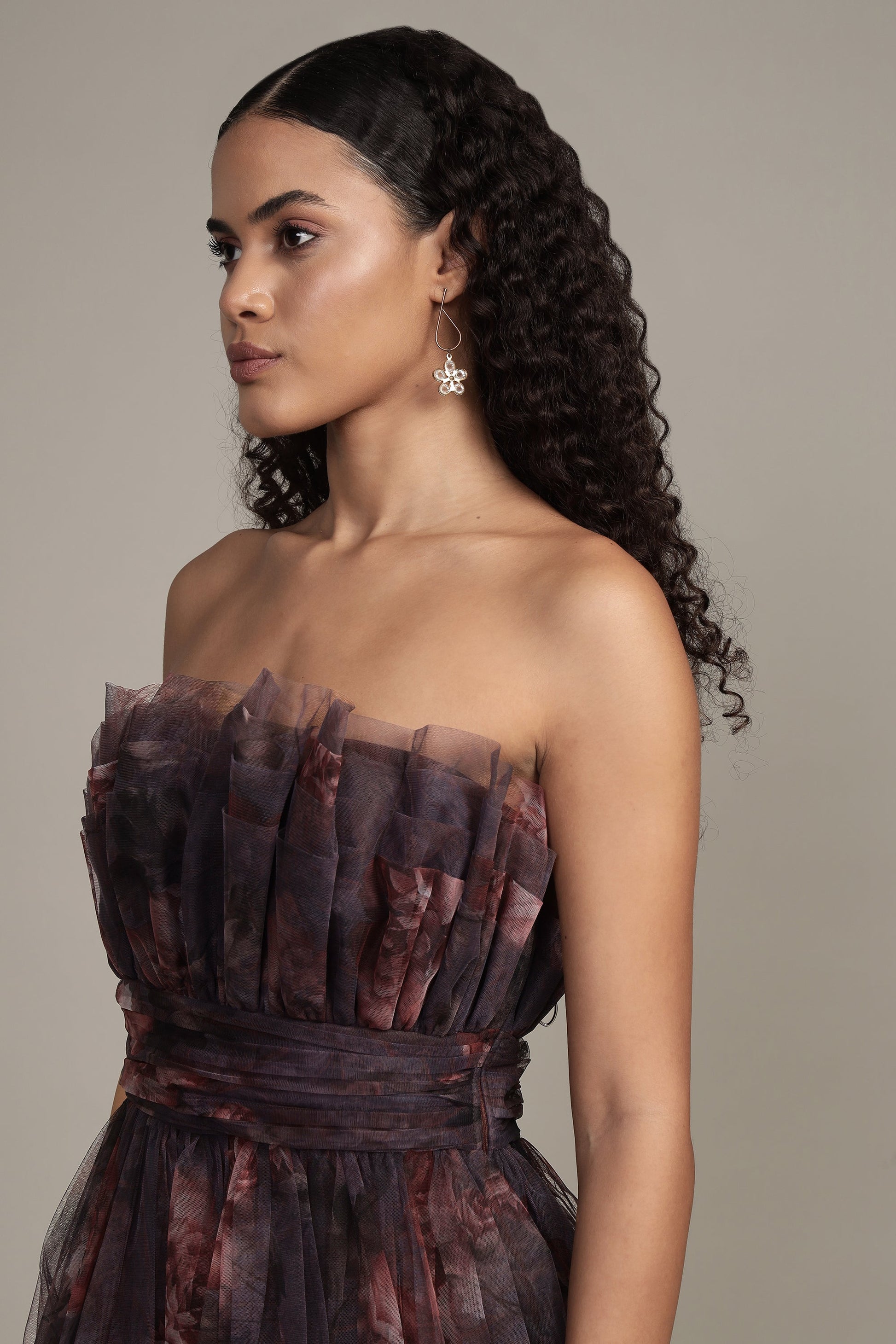 Nanita Mini Dress with Balloon Hem in Plum Floral